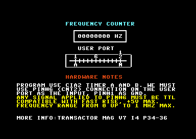Matteo Builds a CIA frequency counter program, and also gives out a listing for you to assemble and run in Endurion's C64Studio.