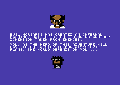 The evil Moriarty has created an infernal machine that feeds food to