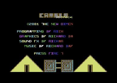 Camels in Space Release date: ?? ?? 2001 Programming: Richard Graphics: Richard Music: Richard Genre: Arcade - Shoot 'em Up Tape Loader: