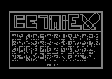 Cetimiex Release date: ?? ?? 1999 Programming: Richard Graphics: Richard Music: Richard, Lords