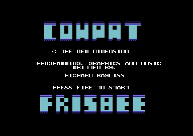 Cowpat Frisbee Release date: ?? ?? 2001 Programming: Richard Graphics: Richard Music: Richard Genre: Arcade - Shoot 'em Up Tape Loader: