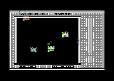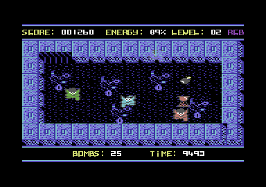 the screen, grabbing bombs, by pressing the fire button. Watch out for the