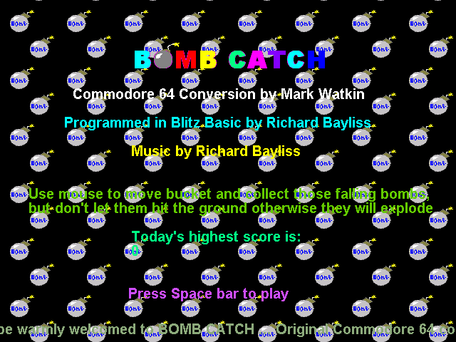 mouse (left/right) and collect those falling bombs. If you let one