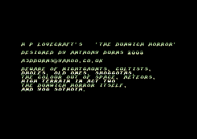 Programming: Pinov Vox (Created using S.E.U.C.K by Sensible Software), Richard Bayliss (SEUCK Title Screen Maker)