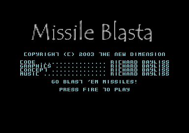 Missile Blasta Release date: 12th January 2003 Programming: Richard Bayliss