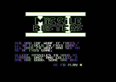 Missile Busters Release date: ?? ?? 2000 Programming: Richard Bayliss
