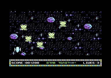 Issue #28 | Intro code by Richard Bayliss Graphics by Nodepond All Music by Richard Bayliss Features: -Plenty of games news and reviews - 64TASS Game programming tutorial - Star Toast (Pictured right) - Syntax Party 2017 - Revision Party 2017 - Homecon 2017 - Play Expo 2017 - Galencia Review (Games reviews) - Slipstream Review EXTRAS: Binary + Source code for Star Toast! | ![]() | |